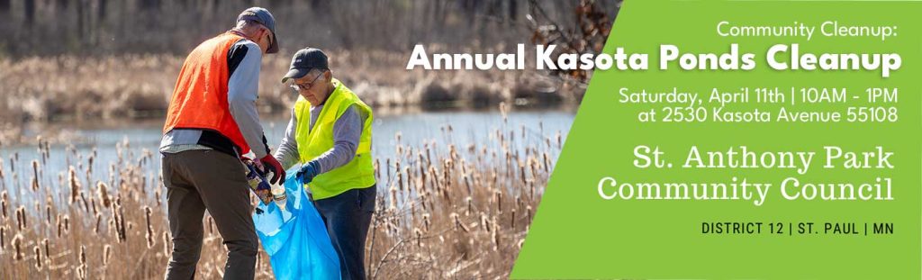 The Kasota Ponds Cleanup is organized by the SAPCC Environment Committee and powered entirely by volunteers. Every bag of trash you help remove makes a real difference for water quality, wildlife habitat, and our neighborhood.